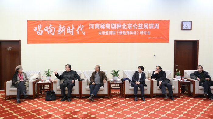11月23日晚,太康縣道情藝術傳承保護中心排演的太康道情戲《張廷秀私訪》作為“河南稀有劇種北京展演周”的第十場壓軸大戲在北京梅蘭芳大劇院亮相。根據“一戲一評”的安排,劇目研討會在二樓會議廳連夜舉辦。來自北京的中國藝術研究院戲曲研究所原副所長劉文峰、《中國戲劇》雜志社副主編高揚,來自河南的著名作曲家朱超倫、著名戲劇評論家劉景亮、譚靜波,文化部非遺司司長陳通,河南省文化廳廳長楊麗萍,中國劇協副主席、河南豫劇院院長李樹建,以及太康縣各級領導和劇團的主創人員、主要演員參加研討會,中國文化報、中國藝術報、魅力中國雜志社、河南戲曲廣播、恒品文化?戲緣的媒體記者旁聽研討會。