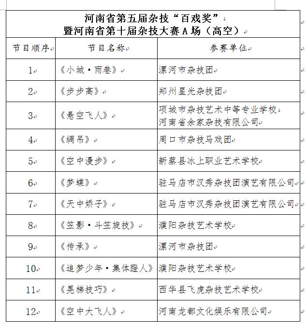 河南省第五屆雜技“百戲獎”暨河南省第十屆雜技大賽于11月28日至29日在濮陽市舉行。大賽由河南省文聯、河南省文化廳、濮陽市人民政府共同主辦,河南省雜技家協會、濮陽市委宣傳部、濮陽市文聯、濮陽市文廣新局承辦。