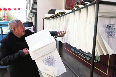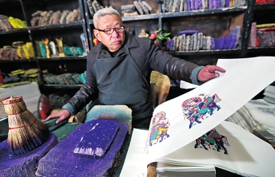 “我都干了近20年了,這樣的技藝都是家傳的,從小學。現在喜歡木版年畫的年輕人也不少,來學的也不少,去年還有一個外國留學生來學了一陣子。為了更好地傳播朱仙鎮木版年畫,我們還提供教學版。現在的朱仙鎮木版年畫,不僅僅是年畫還是一種工藝品,可以做掛畫、裝飾品等。另外,我們在網上也開了網店,網絡銷售的收入能占到總收入的60%。現在比較忙,過年了,很多人都在訂購年畫,如果你想私人定制,就得提前兩三個月預定,刻版、印刷、晾曬,其中晾曬以陰干最好,所以比較費時間。現在我們這個店一年的收入大概十幾萬吧,顧得住。”白院長很高興,“最重要的是傳承了中國的傳統工藝,這才是最關鍵的。”