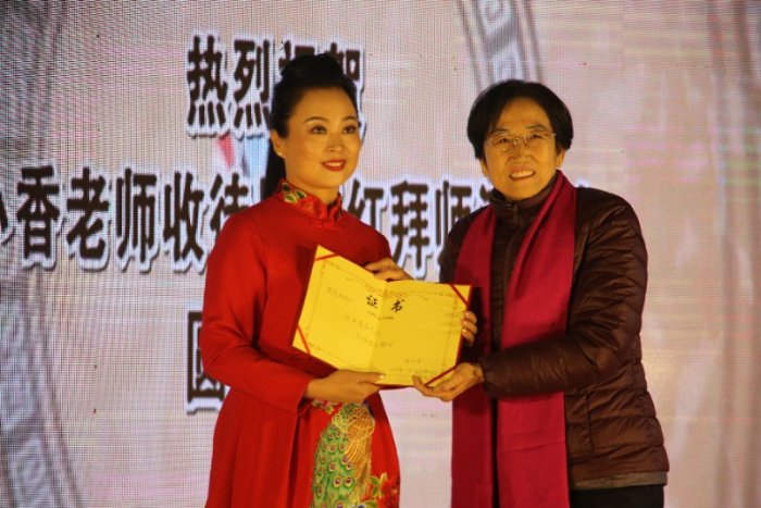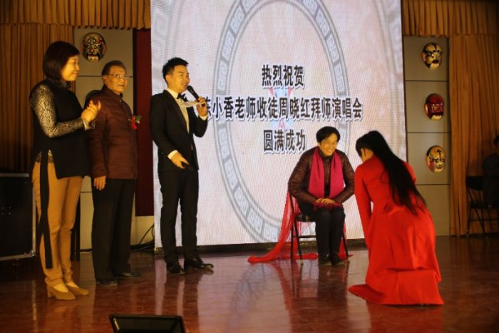 周曉紅從小酷愛戲曲,特別衷愛豫劇常派唱腔,自學多年漸成才。周曉紅偶遇陳小香老師,她的演唱得到陳老師的認可。經過4年嚴格的德、藝雙重考驗,陳小香終于歡喜 地收周曉紅為徒,圓了周曉紅多年的夢想。
