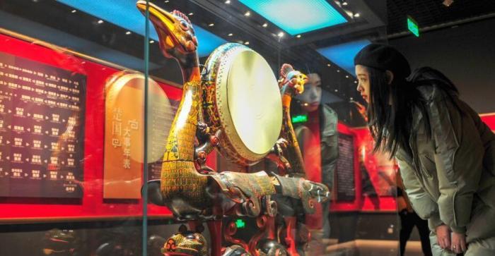 沈陽展出神秘楚國貴族文物 再現楚國大夫生活 圖) 來源:中新社 作者:于海洋 攝 編輯人:荊書劍 發布時間:2018-01-17 1月16日,“九連墩的故事——湖北九連墩墓出土文物”展覽在遼寧省博物館展出。展覽由湖北省博物館和遼寧省博物館共同主辦,精選湖北省博物館收藏的九連墩墓出土青銅禮器、漆木器、樂器以及車馬器和兵器115件(組),再現楚國大夫高雅的貴族生活、浪漫的藝術情懷和驍勇的英雄氣概。展覽將為遼沈觀眾帶來一道獨特的“楚國文化盛宴”,本次展覽展出至2018年3月11日,期間包括新年、春節、元宵節等多個節日。圖為市民在參觀展覽。