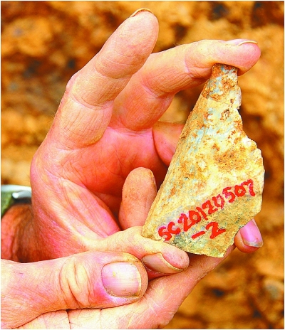 在藍田上陳村一帶第27層古土壤中取出的石器近景。資料圖片