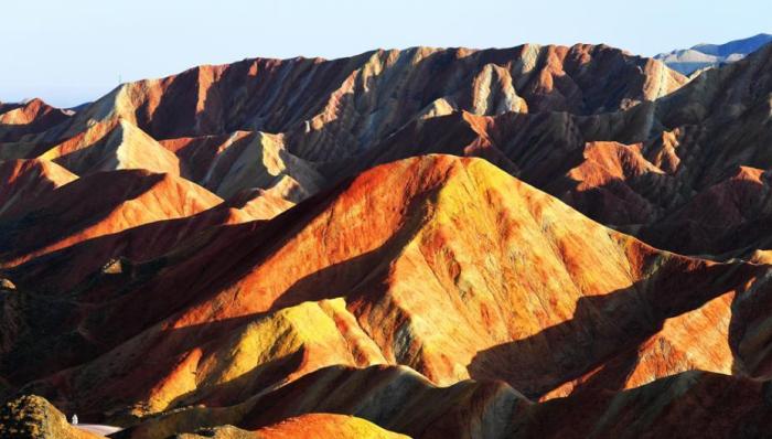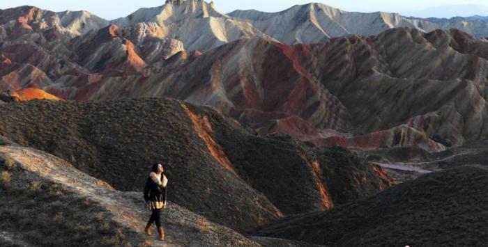 甘肅張掖七彩丹霞冬日暖陽下如打翻調色板 編輯人:荊書劍 發布時間:2018-01-23 冬日里,甘肅張掖丹霞地質公園,丹霞地貌在冬日暖陽的照射下,色彩斑斕,如同打翻了調色板。甘肅張掖丹霞地貌發育于距今約200萬年的前侏羅紀至第三紀,主要由紅色礫石、砂巖和泥巖組成,有明顯的干旱、半干旱氣候的印跡,有交錯層理、四壁陡峭、垂直節理、色彩斑斕的特點。 朱文鑫 攝