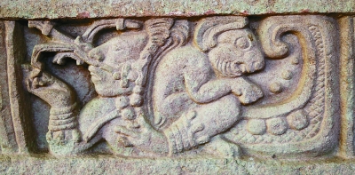 博南帕克石雕上的月神和兔。圖片由作者提供
