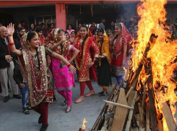 印度女性繞篝火載歌載舞慶傳統節日 (圖)