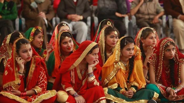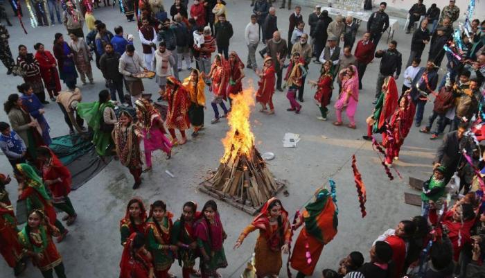 當地時間1月13日,印度查謨當地女性身著盛裝繞著篝火載歌載舞,慶祝傳統的Lohri節。
