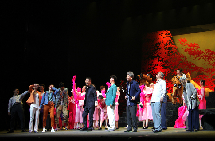 “劇本選題好、舞臺畫面感強、音樂接地氣,尤其是青春靚麗的演員們,使人眼前一亮……再經打磨,這部戲一定能成為河南又一部精品大戲,也將成為河南豫劇院青年團的壓箱底劇目。”7月8日晚,觀看完豫劇現代戲《堯山情》之后,省內戲曲名家們在連夜召開的研討會上如此評價該劇,并為該劇的提升出謀劃策。