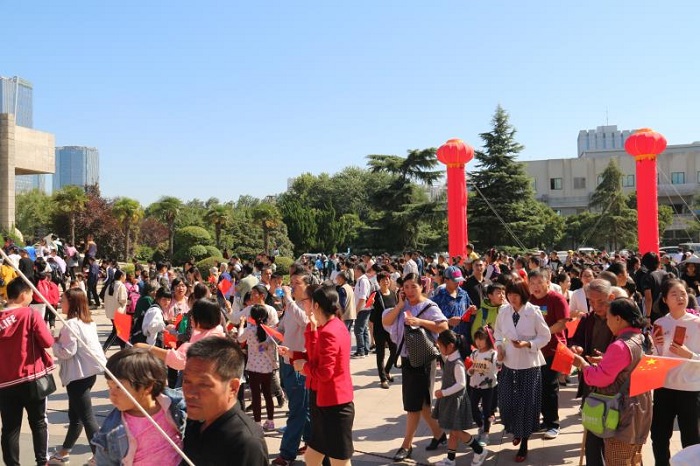 10月1日上午,金風送爽,陽光明媚,河南博物院廣場上彩柱聳立,國旗飄揚,眾多家庭扶老攜幼,以參觀河南博物院,感受中原歷史文化的形式慶祝新中國六十九歲華誕!