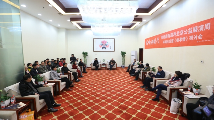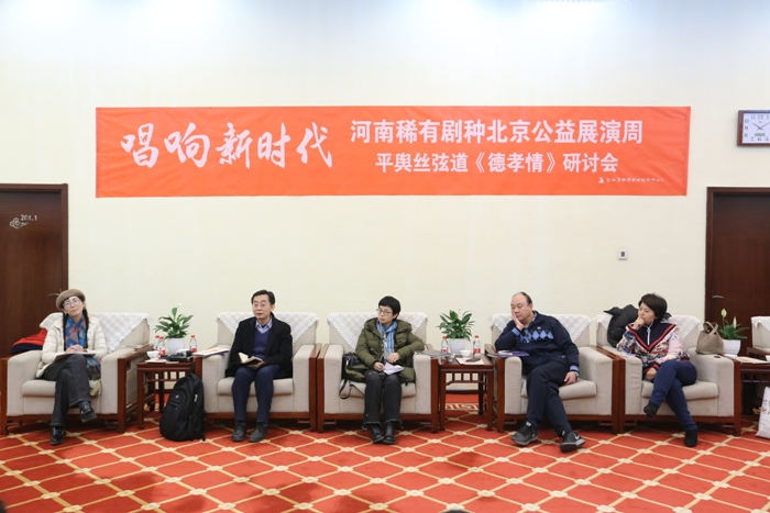 11月20日晚,由平輿絲弦道非遺傳承保護(hù)中心傾力打造的絲弦道《德孝情》作為“河南稀有劇種展演周”的第六場(chǎng)劇目在北京梅蘭芳大劇院閃亮登場(chǎng)。根據(jù)“一戲一評(píng)”的安排,演出結(jié)束后,連夜召開劇目研討會(huì)。來自北京的中國(guó)藝術(shù)研究院戲曲研究所所長(zhǎng)王馗、中國(guó)戲曲研究院曲藝研究所所長(zhǎng)吳文科、《中國(guó)戲劇》雜志社副主編李小青,來自河南的著名戲劇評(píng)論家劉景亮、譚靜波,河南省文化廳藝術(shù)處副處長(zhǎng)解東,以及來自平輿的各級(jí)領(lǐng)導(dǎo)和院團(tuán)的主創(chuàng)人員和主要演員參加研討會(huì),魅力中國(guó)雜志社、河南戲曲廣播、恒品文化?戲緣的媒體記者列席會(huì)議。