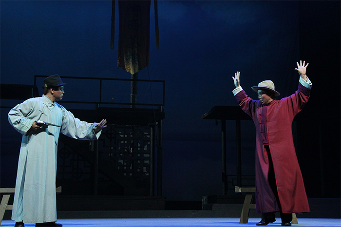 豫劇《口上的女人》由國家一級編劇韓楓執筆,中國戲曲學院教授趙偉明執導,國家一級作曲湯其河譜曲,國家一級演員肖秀蓮領銜主演。該劇以周家口為歷史背景,描寫了一段抗戰的傳奇。與其他抗日題材相比,本劇借助周家口(當地人慣稱“口上”)碼頭女掌門胡月秀與丈夫朱世良夫妻關系的突變、畸變及震蕩,在親情倫理在與民族正義發生嚴重沖突之際,在心靈的痛苦掙扎中,主人公艱難抉擇,大義滅親,最終協助抗日游擊隊鏟除漢奸丈夫的故事。