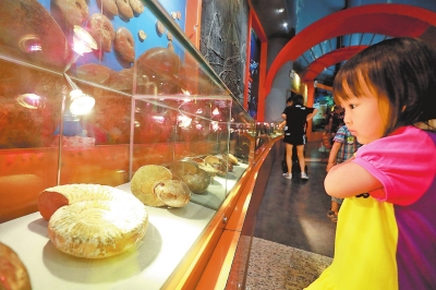 7月1日,一位小朋友在河南省地質博物館參觀。暑假來臨,全省各類博物館成為中小學生學習的去處。聶冬晗 攝