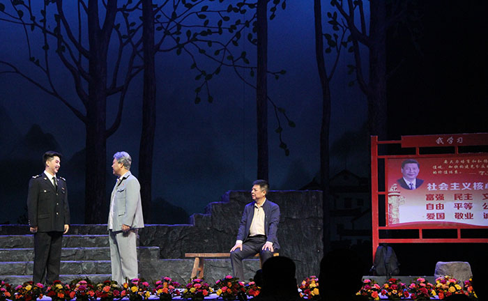 現(xiàn)代豫劇《堯山情》以獲得2017年全國脫貧攻堅獎的海關總署駐河南魯山縣瓦屋鎮(zhèn)土橋村第一書記王凱為原型,并結合扶貧攻堅戰(zhàn)線其他楷模人物的先進事跡創(chuàng)作而成。劇中通過對駐村第一書記汪可所見、所思、所歷、所為的展現(xiàn),塑造了一位扎根基層、無私奉獻、帶領群眾脫貧致富的第一書記形象,反映了駐村第一書記堅決執(zhí)行黨中央決策,牢記宗旨、勇于擔當,帶領人民群眾戰(zhàn)貧困、謀發(fā)展的英雄創(chuàng)舉,展示了基層干部在脫貧攻堅中履行職責,開拓創(chuàng)新,樂于奉獻的精神風貌。