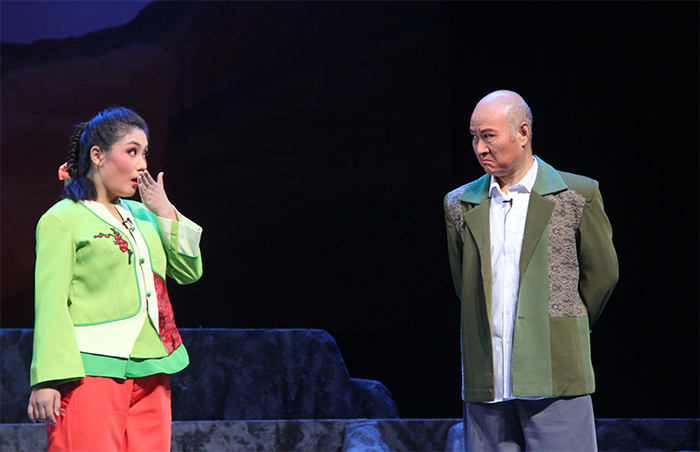 三是嚴肅問題喜劇化處理。“精準扶貧”關乎民生與社會穩定,它與生俱來帶有莊重感、嚴肅性,為了使觀眾在寓教于樂中領會精準扶貧的精髓,該劇藝術風格定位于輕喜劇,老老少少,形形色色的人物具有鮮明個性的喜劇性格,在各自不同個性中組織矛盾沖突,從而揭示作品主題。