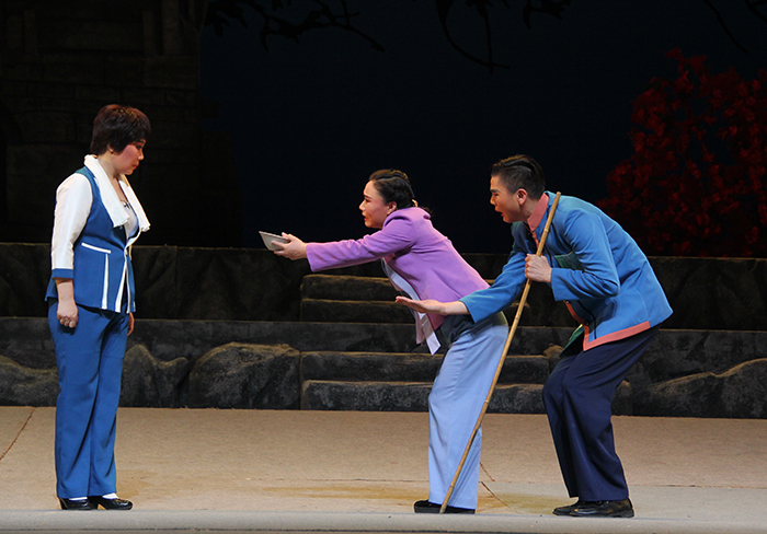 五是充滿中原地域特色的音樂設計。該劇的音樂設計緊緊抓住具有濃郁地方特色的豫劇音樂,在繼承的前提下,有意識地進行革新和創造,做到“既具有濃郁的地方特色,又有鮮明的時代氣息”“傳統而不保守,時尚中透露穩重”。把傳統與時尚緊密結合,更好地為角色、為表現豐富、復雜的人物內心情感服務。