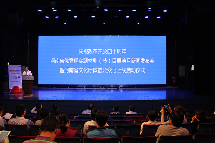 2018年是我國改革開放40周年,為全面展示我國改革開放偉大成就,向黨和人民匯報河南改革開放40年來的優(yōu)秀舞臺藝術(shù)成果,推動現(xiàn)實題材戲劇作品傳播和推廣,6月14日,“慶祝改革開放四十周年河南省優(yōu)秀現(xiàn)實題材劇(節(jié))目展演月新聞發(fā)布會”在河南藝術(shù)中心小劇場舉行。河南省文化廳黨組書記、廳長宋麗萍,省委宣傳部副巡視員趙鋼,省文化廳黨組成員、副廳長李霞,河南豫劇院院長李樹建等出席活動。