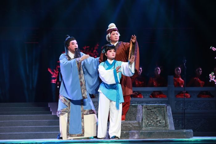 新編絲弦道劇目《德孝情》,取材于明代陳黑齊《躍鯉記》傳奇。該劇講述的故事發生在古代的姜灣村,鄉紳姜文家庭富裕和諧,妻子龐三春賢惠能干,孝敬婆婆,敬夫愛子;兒子安安聰明伶俐,孝順好學。由于游手好閑的賭徒馬三向三春借錢還債不成,又被奚落,懷恨在心,利用好逸惡勞又暗地仰慕姜文多年的花蝴蝶,巧施離間之計,使不明真相的婆婆趕走三春,致使三春投河自盡,幸得老尼姑搭救留在庵中。安安得知母親下落后,積米三升尋到母親。后在姜文、安安的德孝精神的感召下,婆婆痛念三春,追悔莫及。馬三和花蝴蝶也恐遭雷擊天譴,承認錯誤,改過自新。姜文攜母親和安安接回三春,全家人終于獲得團聚。該劇是戲曲與曲藝的有機融合,具有獨特的演出風格。劇情曲折感人,表演親切自然,音樂融入多種民間元素,唱腔委婉動聽,娓娓道來,是一部彰顯“孝為先、德為重”的孝德精神,歌頌真善美,鞭撻假惡丑的正能量作品。