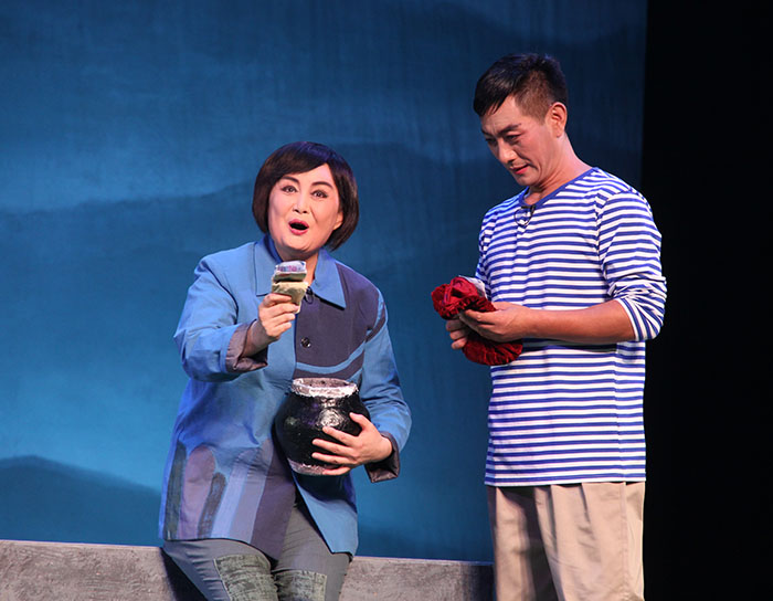 豫劇《泥笛淚》由編劇、導演李云,作曲配器李素奇、張現增,舞美設計吳放、楊強等主創。著名豫劇表演藝術家、國家一級演員崔小田領銜主演(飾肖翠娥),主要演員有任現軍、薛曼、徐鳳、楊少龍等。該劇是一出典型的中國式悲劇,彰顯了豫劇崔派藝術特色,歌頌了偉大的母愛。在藝術呈現上,用中華民族的傳統樂器——泥笛貫穿“養兒”“享兒”“贖兒”三個段落,以泥笛代初心、代根本,警示世人不忘初心,為宦海迷途中的人們敲響了警鐘。